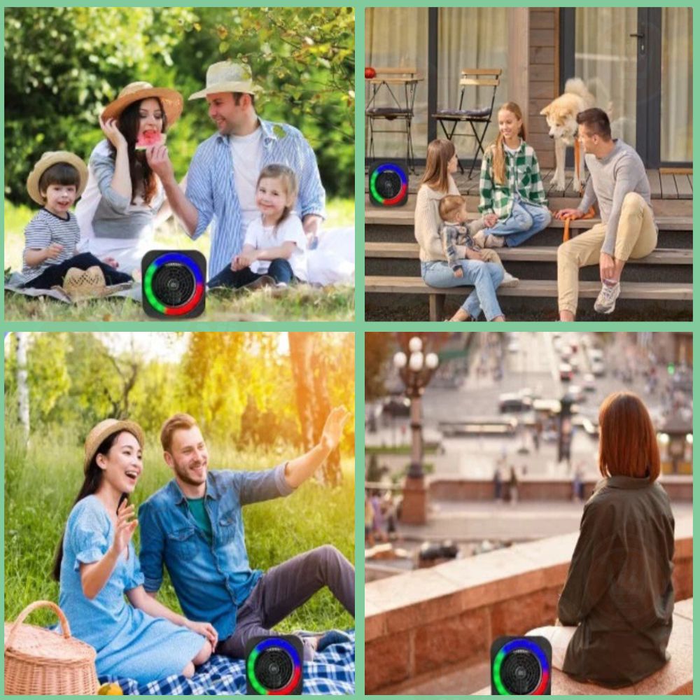 سماعة سبيكر بلوتوث مع مروحة وإضاءة ملونة تعمل بالشحن Super Bass Speaker Portable Music Mini System