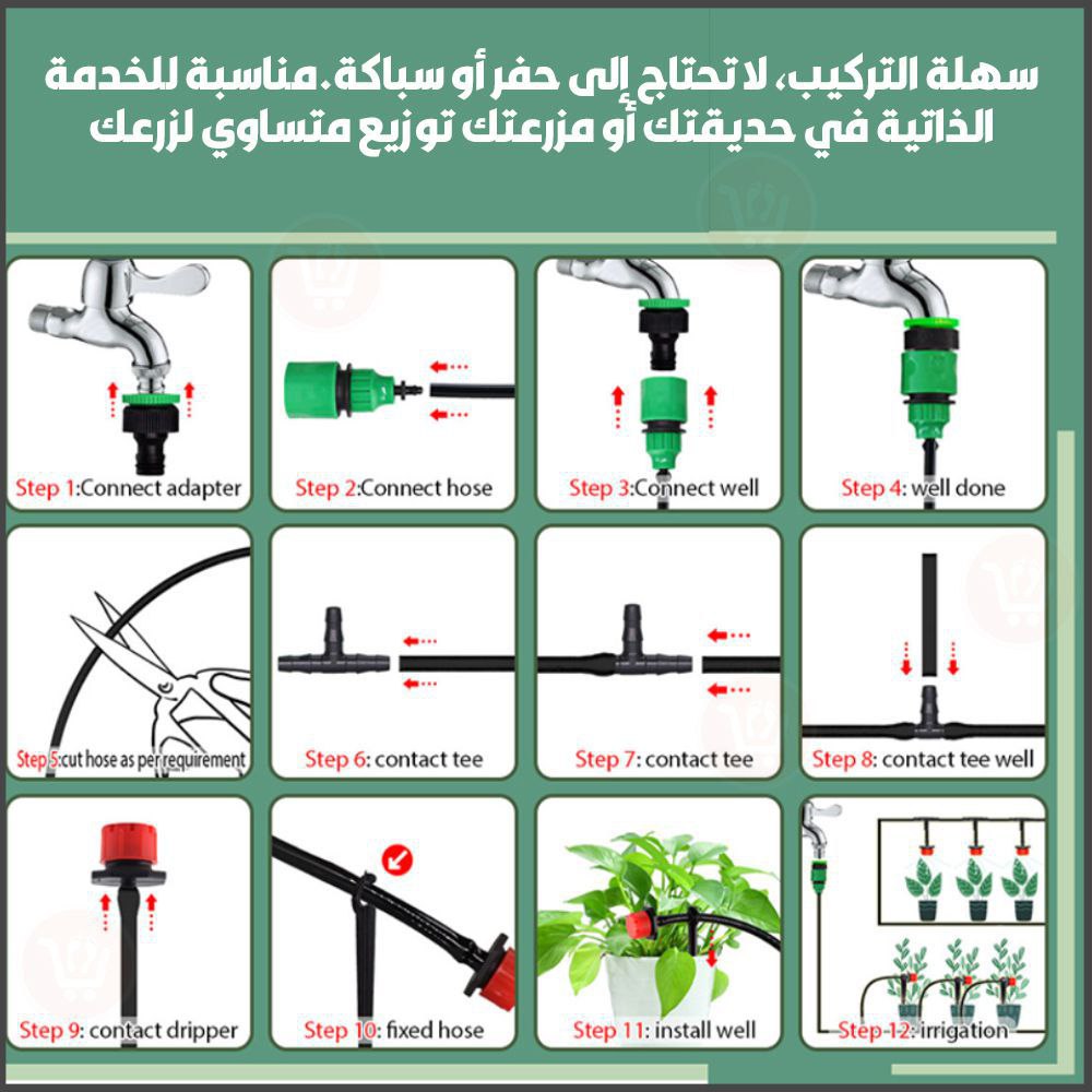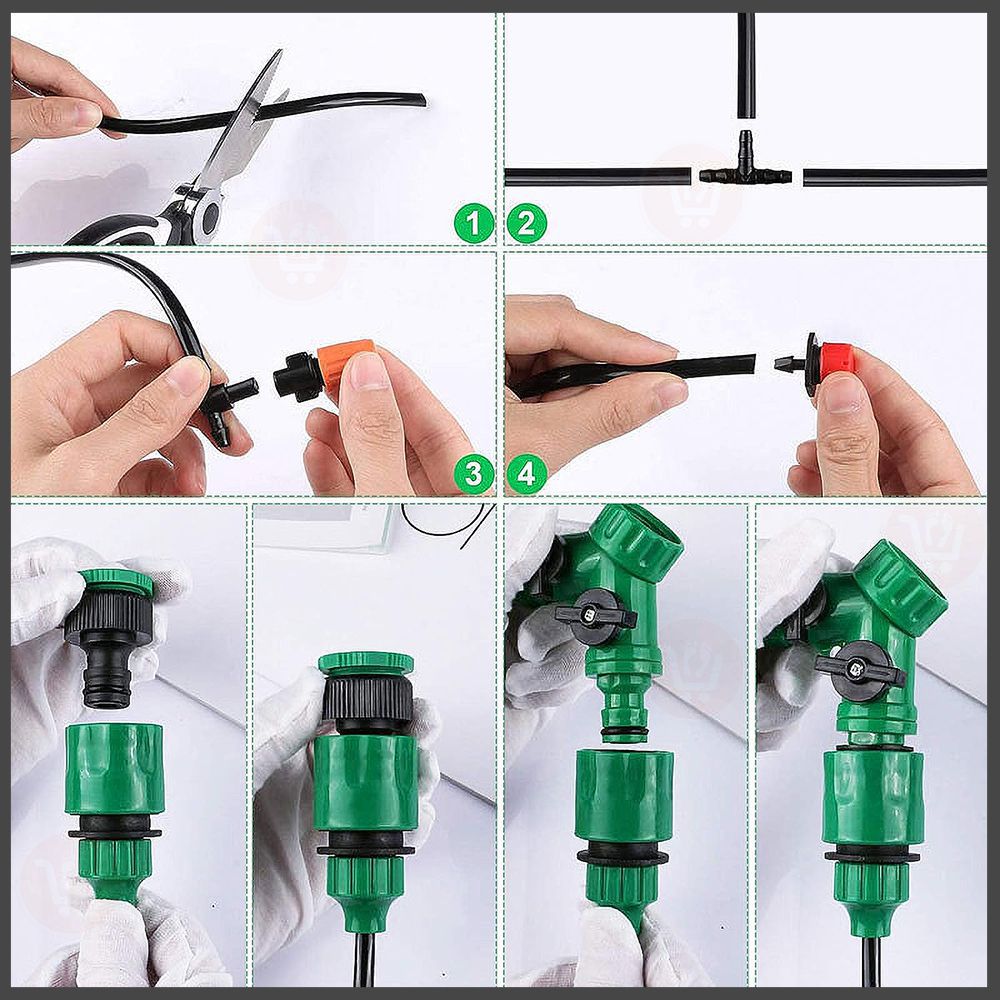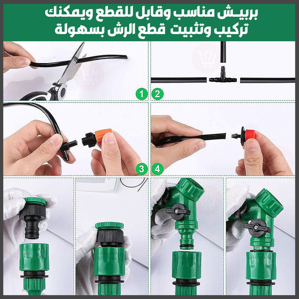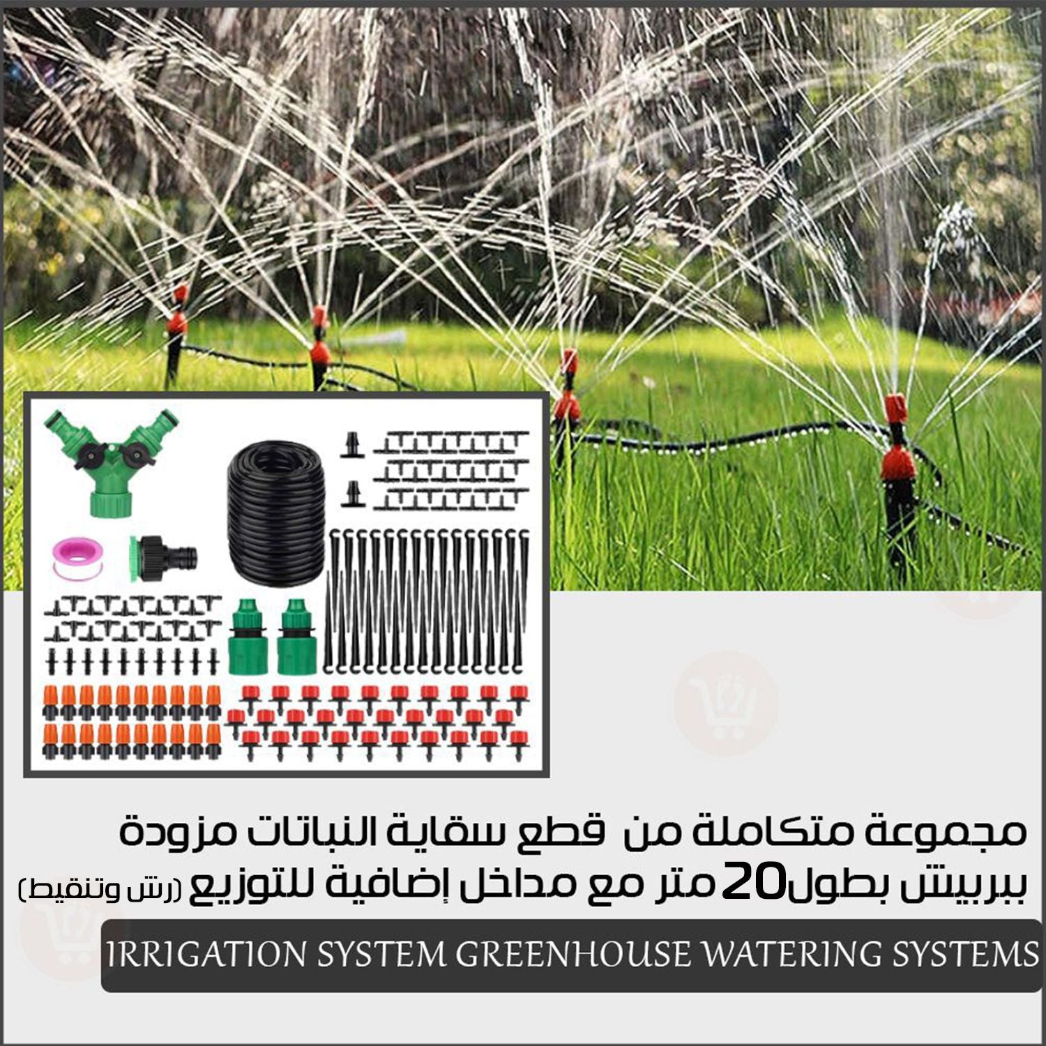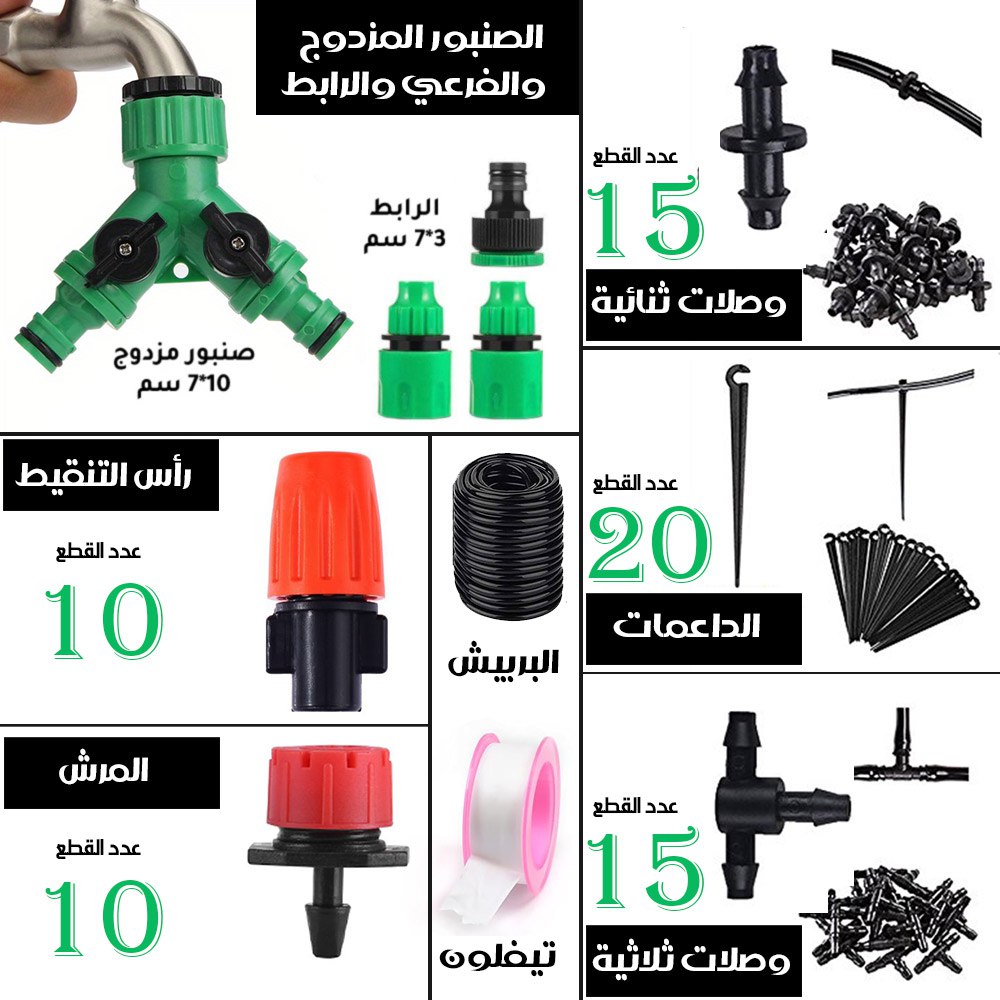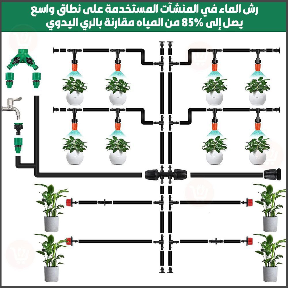 مجموعة متكاملة من قطع سقاية النباتات مزودة ببربيش بطول 20 متر (رش وتنقيط) Irrigation System Greenhouse Watering Systems